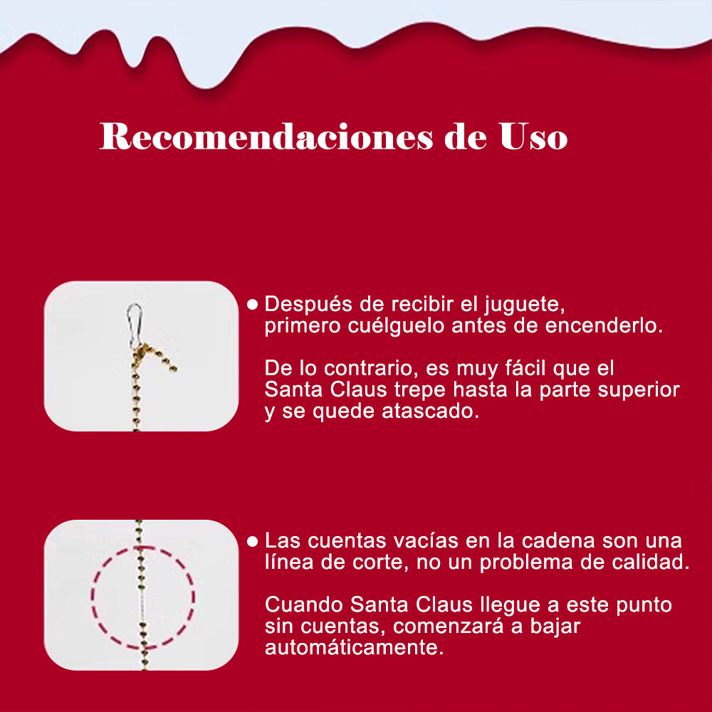 🎅 Diseño animado y musical: Papá Noel trepa la cuerda con movimiento realista y reproduce una alegre melodía navideña.