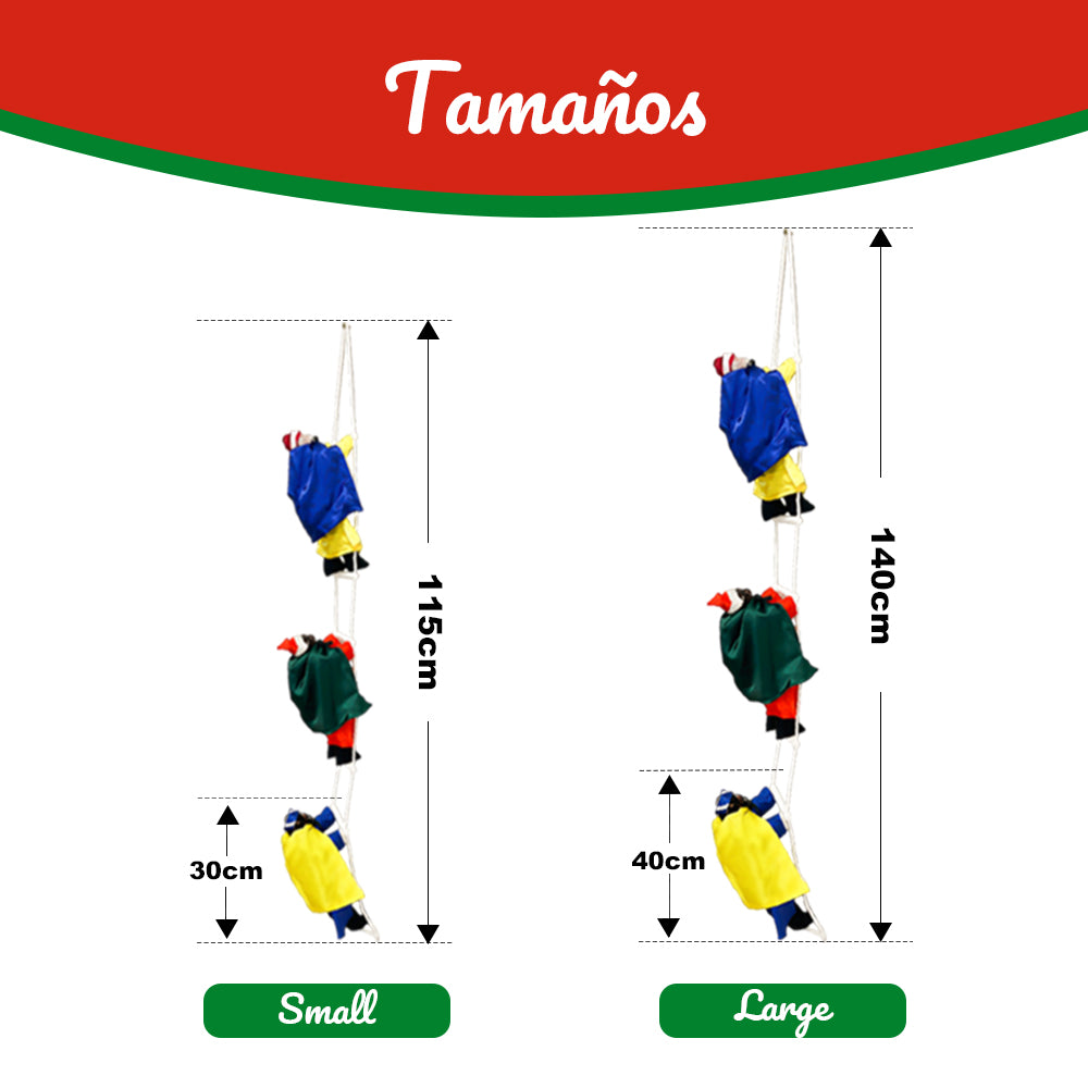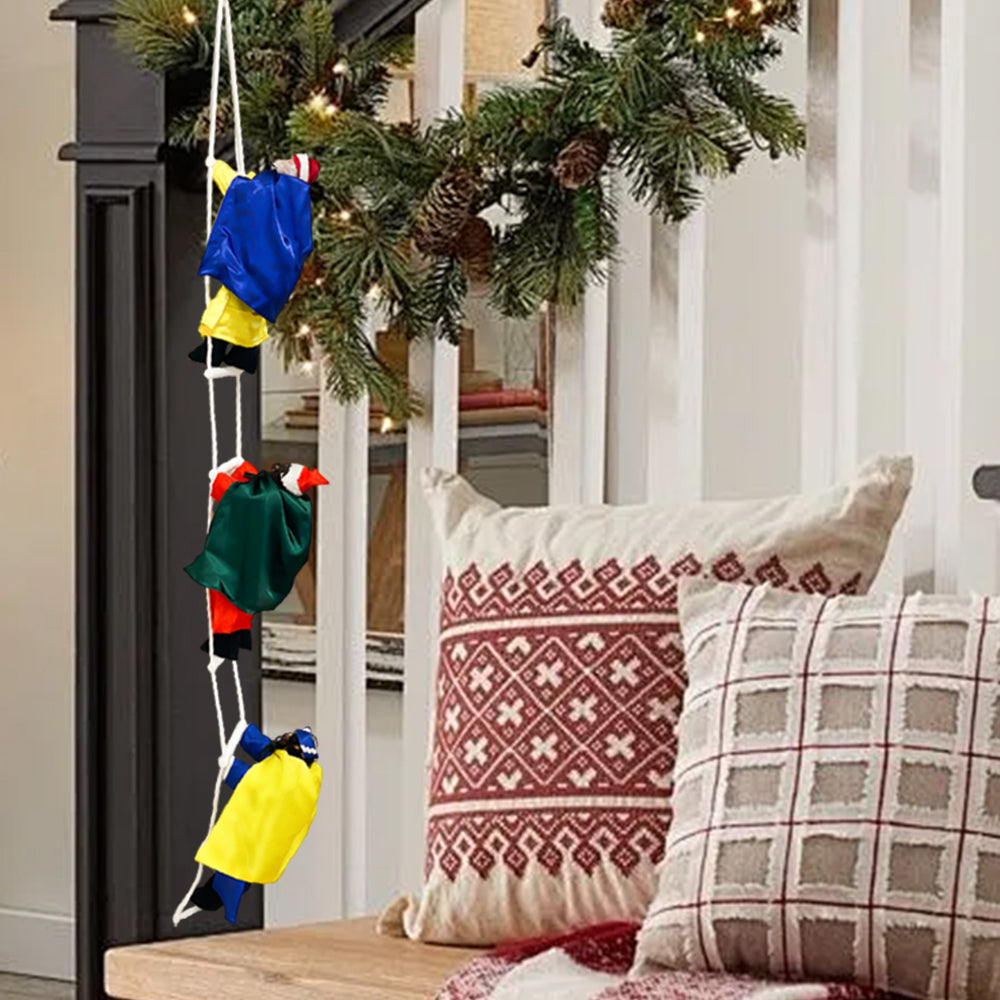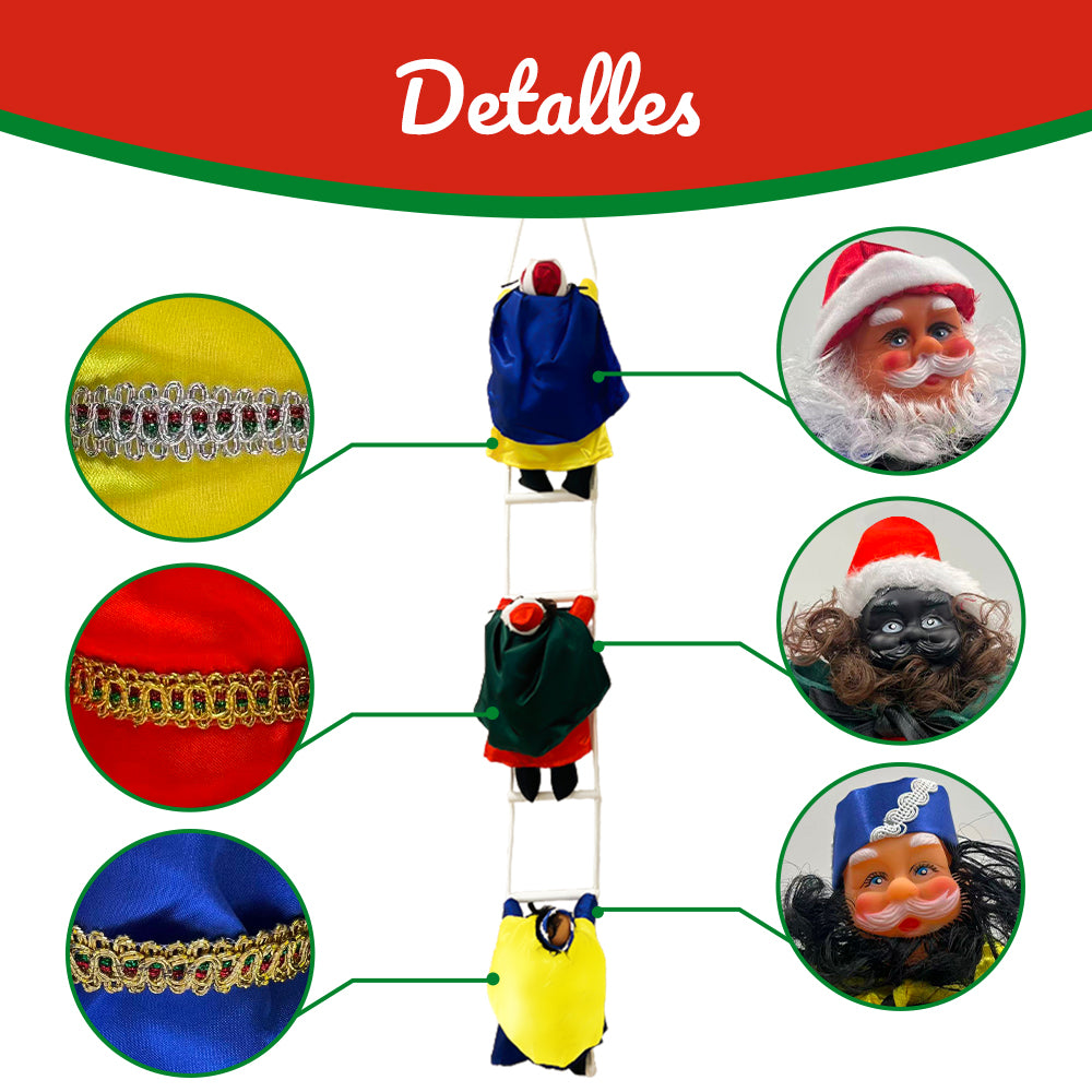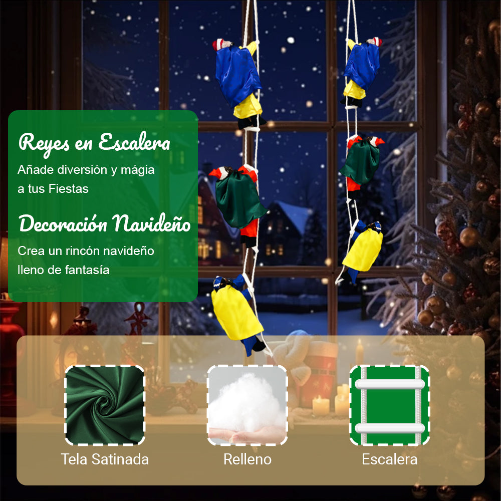 • 🎅 Decoración navideña original: Figuras de los Reyes Magos o Papá Noel escalando una cuerda, creando una escena festiva única y encantadora.